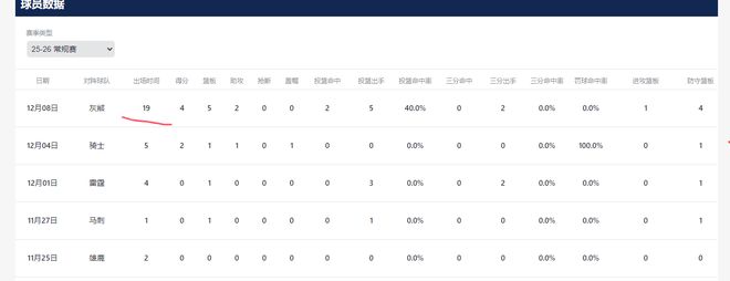 2025年12月08日 杨瀚森生涯首次先发新高19分钟&4分5板2助5犯 开拓者不敌灰熊