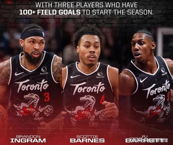 猛龙队还是目前NBA联盟中唯一一支拥有三名球员开赛以来总投篮命中数均已超过100。