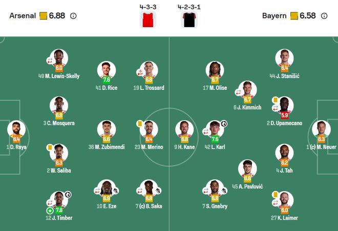 阿森纳3-1拜仁,全场评分出炉:不是赖斯高居第一,诺伊尔不及格