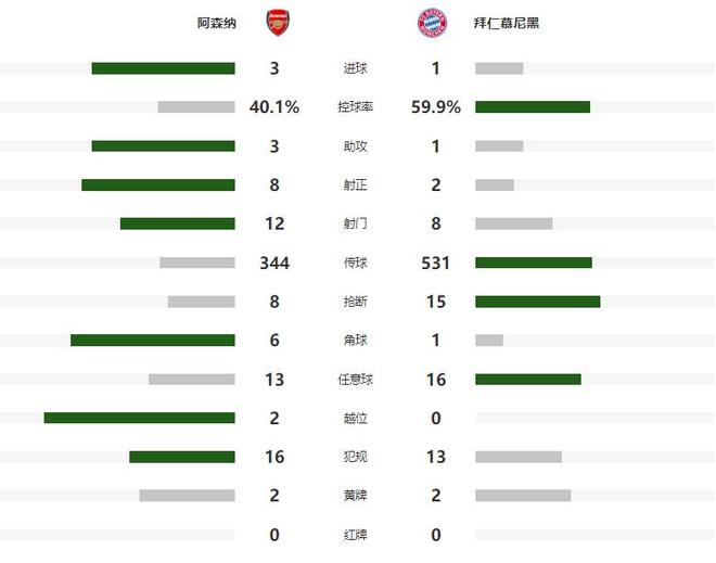 这一个比赛日,拜仁在欧冠联赛第五轮,迎来了一场硬仗,奔赴酋长球场挑战英超领头羊阿森纳,本场比赛阿森纳攻防两端表现更胜一筹,靠着廷伯、马杜埃凯和马丁内利的进球,在主场3-1击败了拜仁,在欧冠和英超双线领跑。