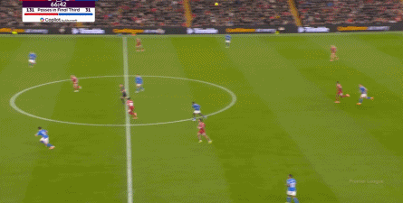这一次转换发生在比赛第55分钟,当时的比分还是0-0,主场作战的利物浦依然没有看到明显的优势,但因为这次转换,不仅给桑德兰送出了定位球,而且还让乔-戈麦斯背上了黄牌。