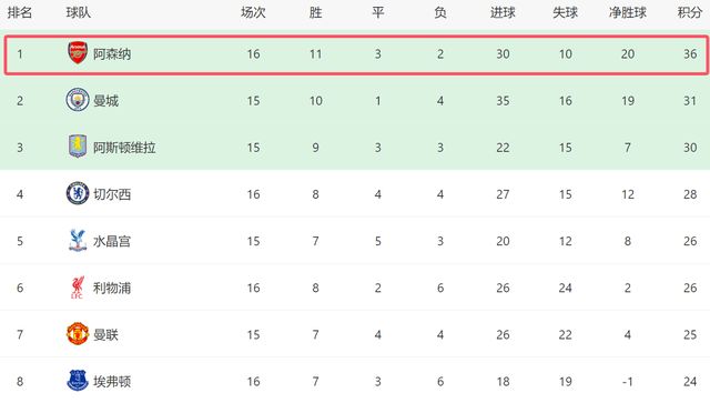 比赛结束后,阿森纳上下无疑心有余悸。因为伤病和赛程频密,阿森纳的状态明显下滑,好在他们的运气不错,本场最终还是拿到了3分。本场过后,阿森纳坐稳了榜首的位置,在多赛一场的情况下,他们甩开曼城5分,后者本轮做客对阵水晶宫,哪怕瓜帅的球队能够战胜对手,曼城也无缘反超阿森纳。