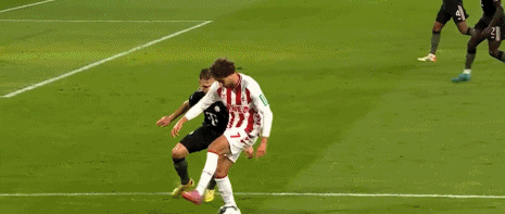 第28分钟,球衣坏掉,奥利塞主罚角球前更换球衣